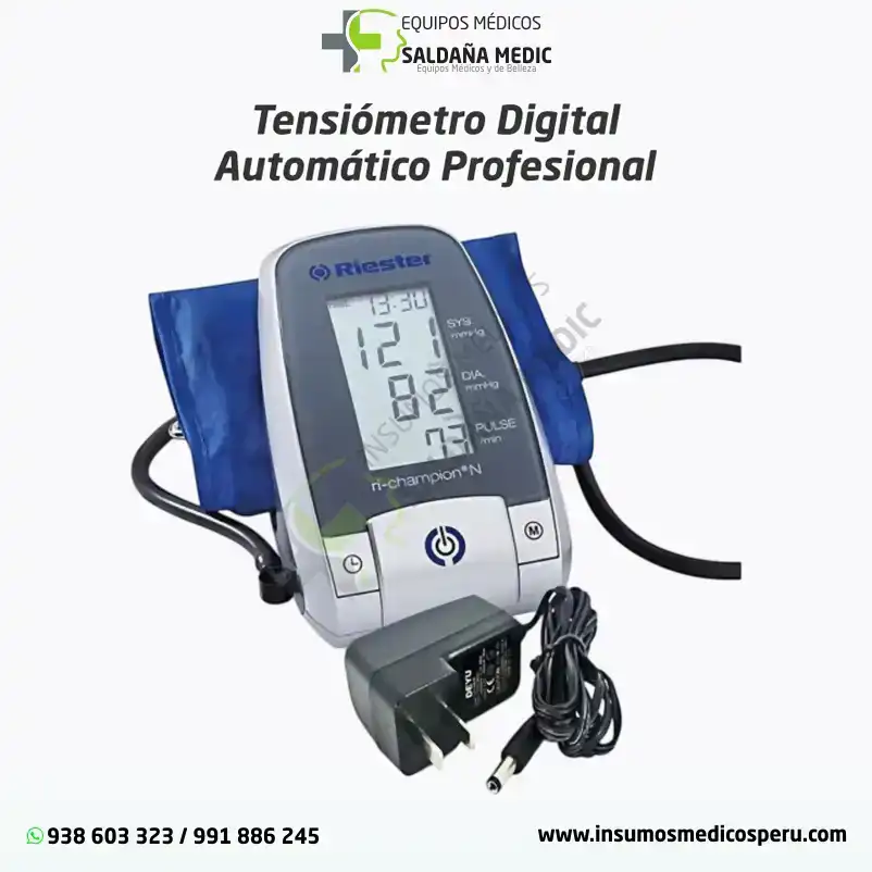 El tensiómetro digital automático profesional es un dispositivo médico electrónico diseñado para medir de manera precisa la presión arterial y la frecuencia cardíaca de forma rápida y sencilla. Funciona mediante un sistema automático de inflado y desinflado, mostrando los resultados en una pantalla digital de fácil lectura. Está indicado para uso profesional y clínico, así como para el monitoreo confiable en el hogar, facilitando el control y seguimiento de la salud cardiovascular.