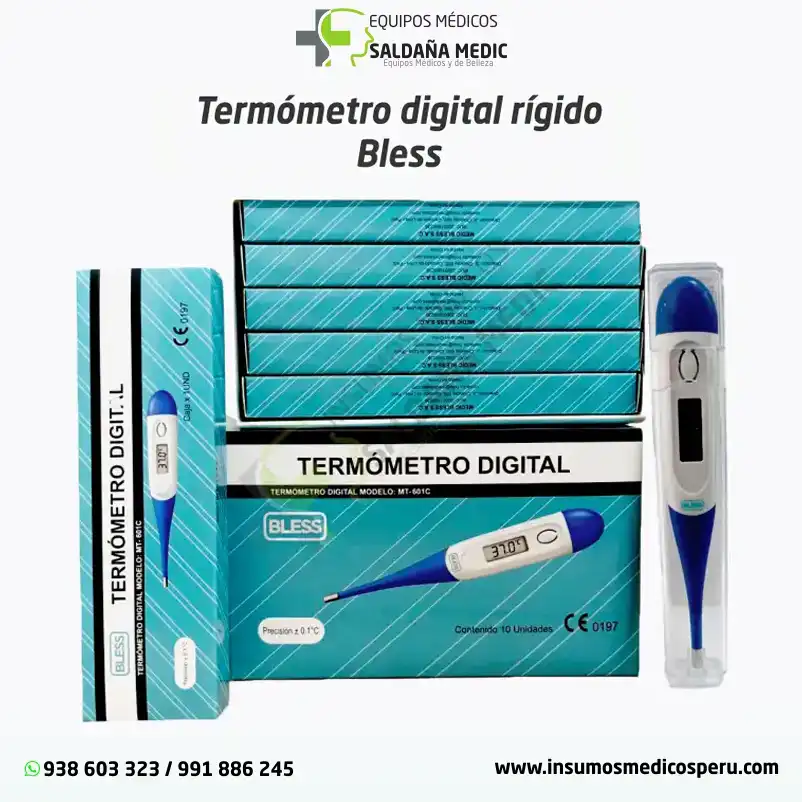 El Termómetro Digital Rígido Bless es un dispositivo confiable y preciso para medir la temperatura corporal de manera rápida y segura. Su diseño rígido permite una colocación estable y cómoda, ideal para medición oral, axilar o rectal según se necesite. Cuenta con pantalla digital de fácil lectura, alarma de fiebre y apagado automático, garantizando comodidad y exactitud en cada uso. Perfecto para hogares, clínicas y consultorios, combina durabilidad, higiene y practicidad en un solo instrumento.